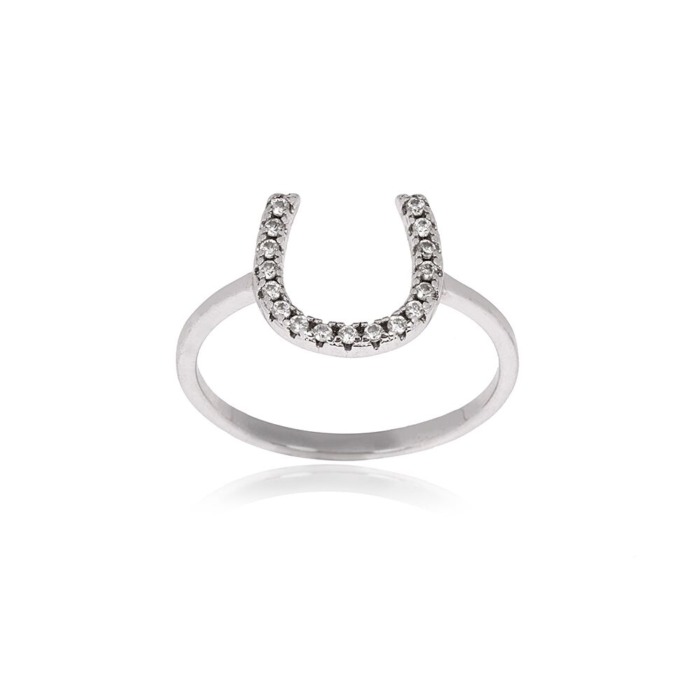 Anel Ferradura 2 aros Ouro Branco 18k e Diamantes Material: ouro 18k | 0,97 gramas Cor: branco Pedra: 33 Diamantes 0,13 quilates Prazo de Produção: 15 dias