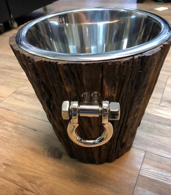 Balde de gelo madeira com prateado