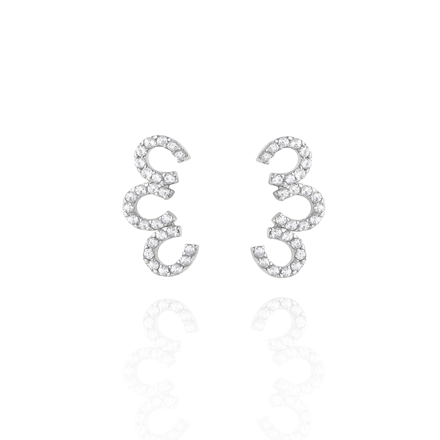 Brinco Mini Earcuff Ferradura com 58 pontos de topázio incolor.
