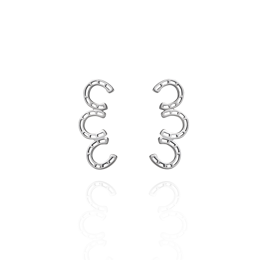 Brinco Mini Earcuff Ferraduras vazadas em Ouro Branco 18k.