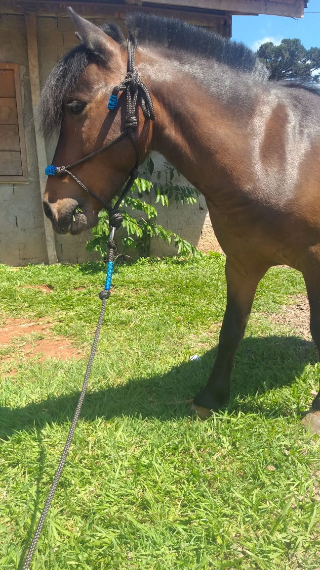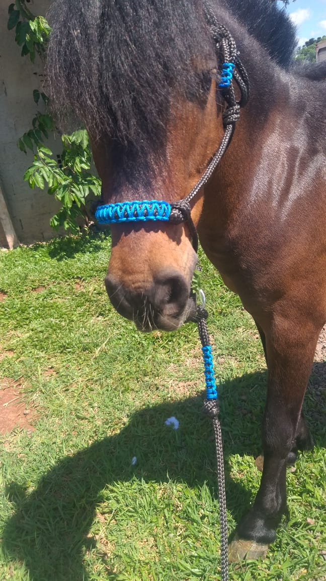corda em polipropileno, super resistente e ao mesmo tempo macia, não machuca o rosto do cavalo, e nem sobe no olho.