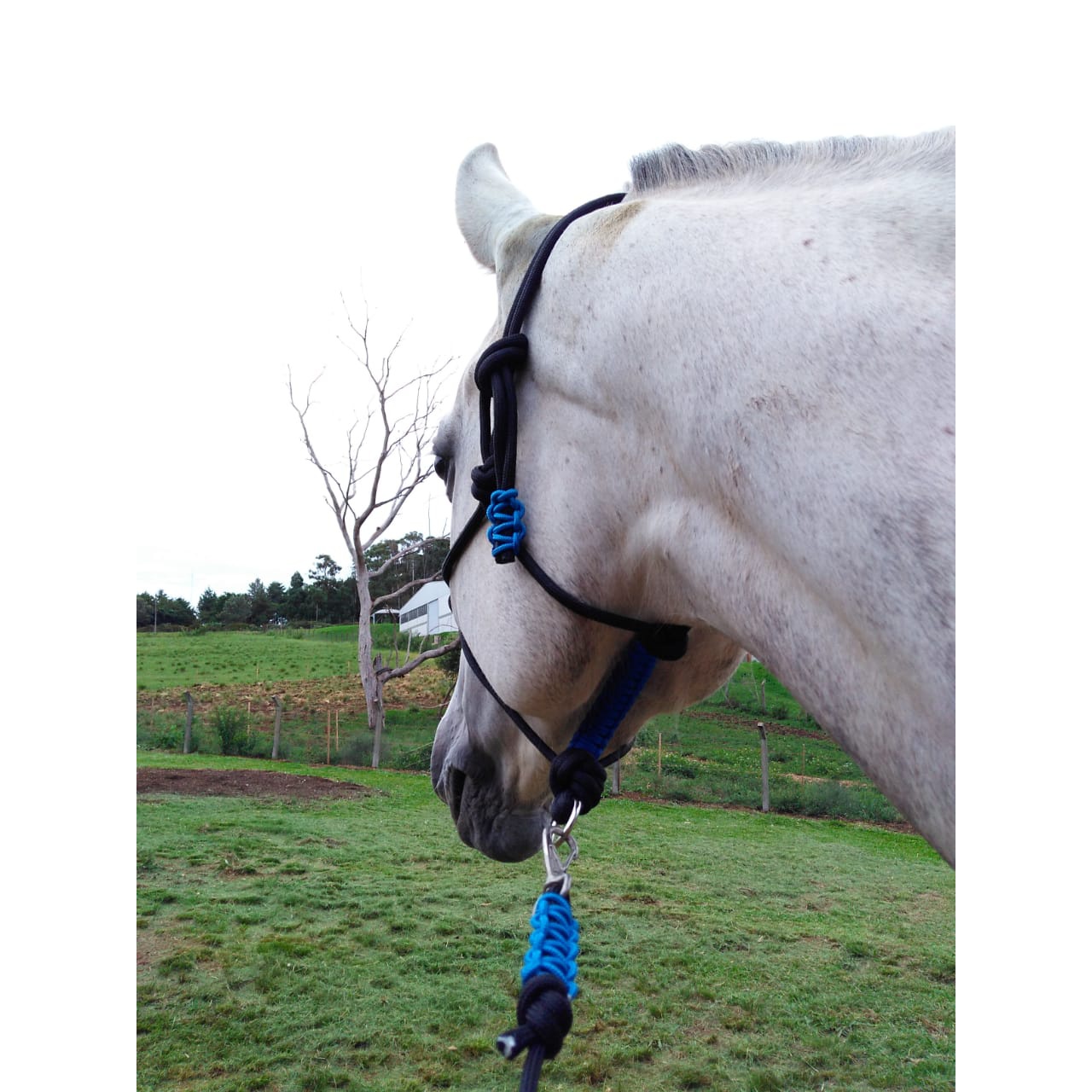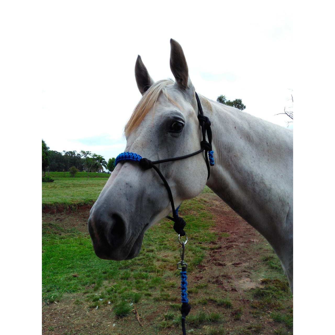 corda em polipropileno, super resistente e ao mesmo tempo macia, não machuca o rosto do cavalo, e nem sobe no olho.