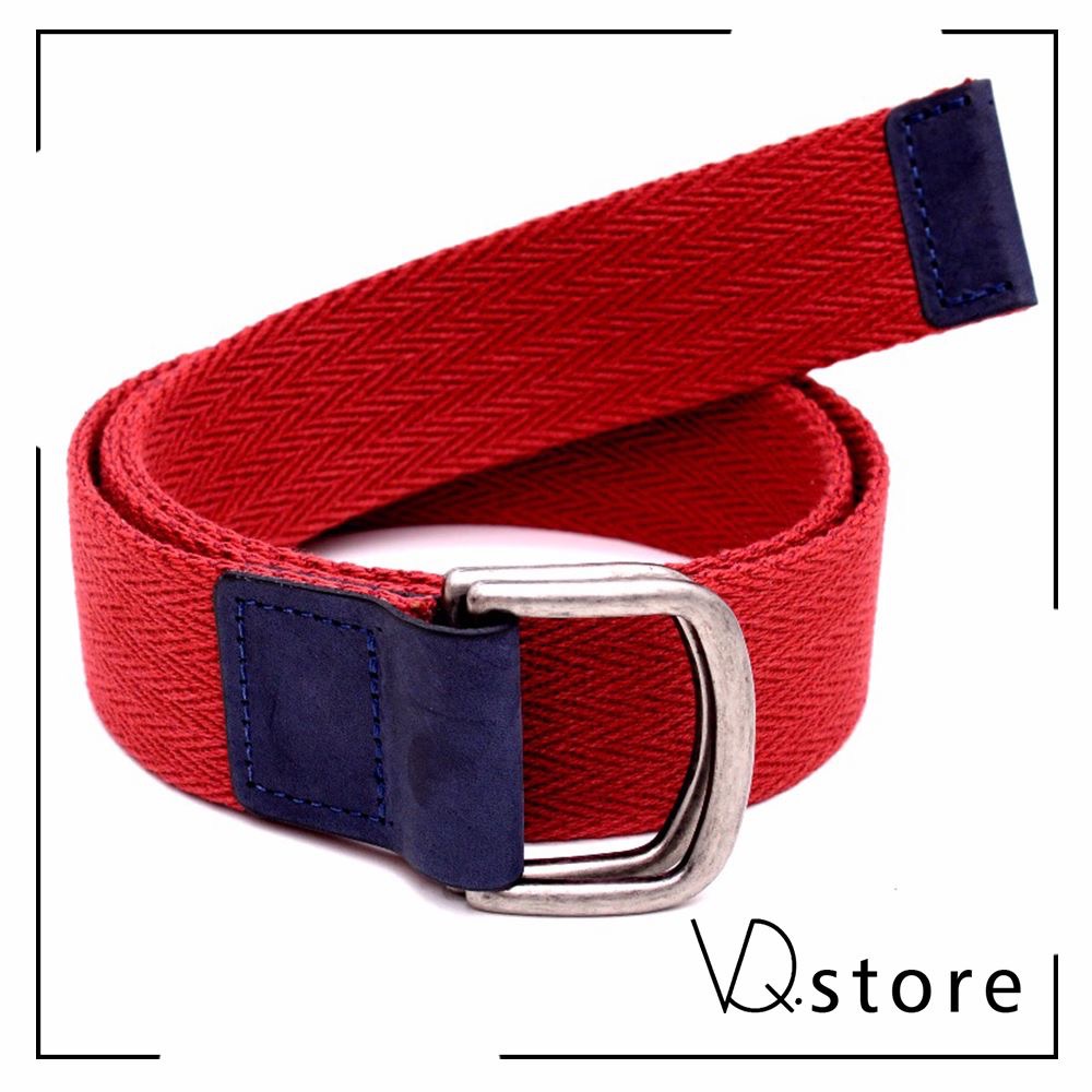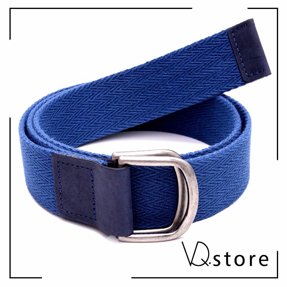 Cinto em lona com 4 cm de largura, couro napa calf marinho e fivela de metal dupla para fechamento transpassado. Tamanho 85.