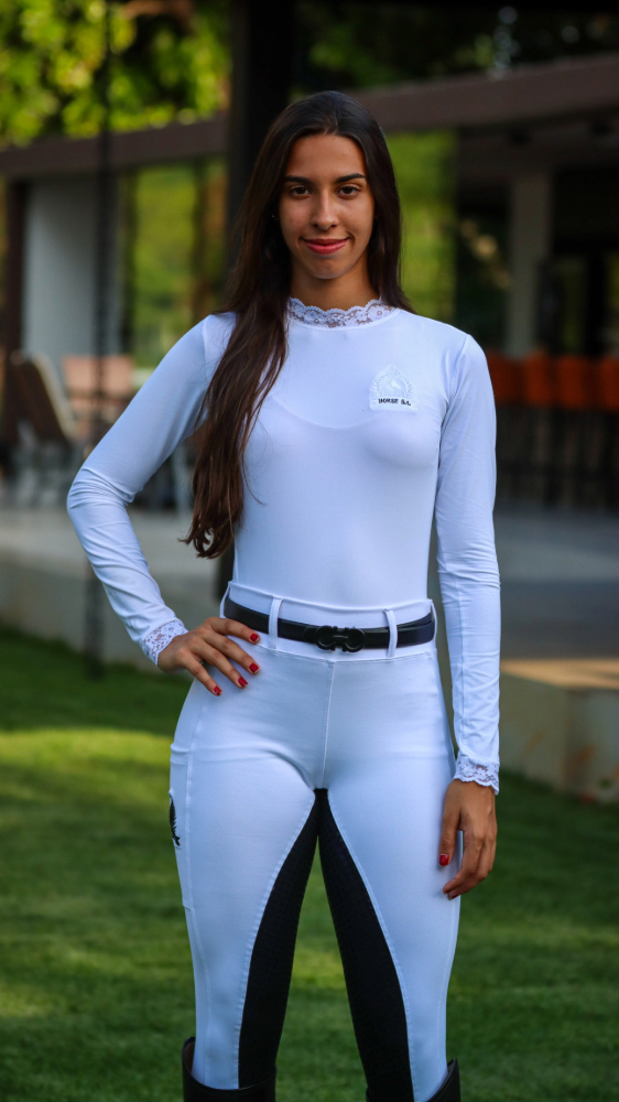 Culote Hipismo Prova Branco e Preto Full Grip Horse SA