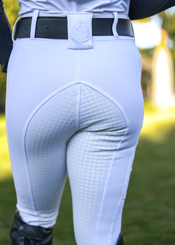 Full Grip na parte interna da perna que gera extrema aderência na sela do cavalo.