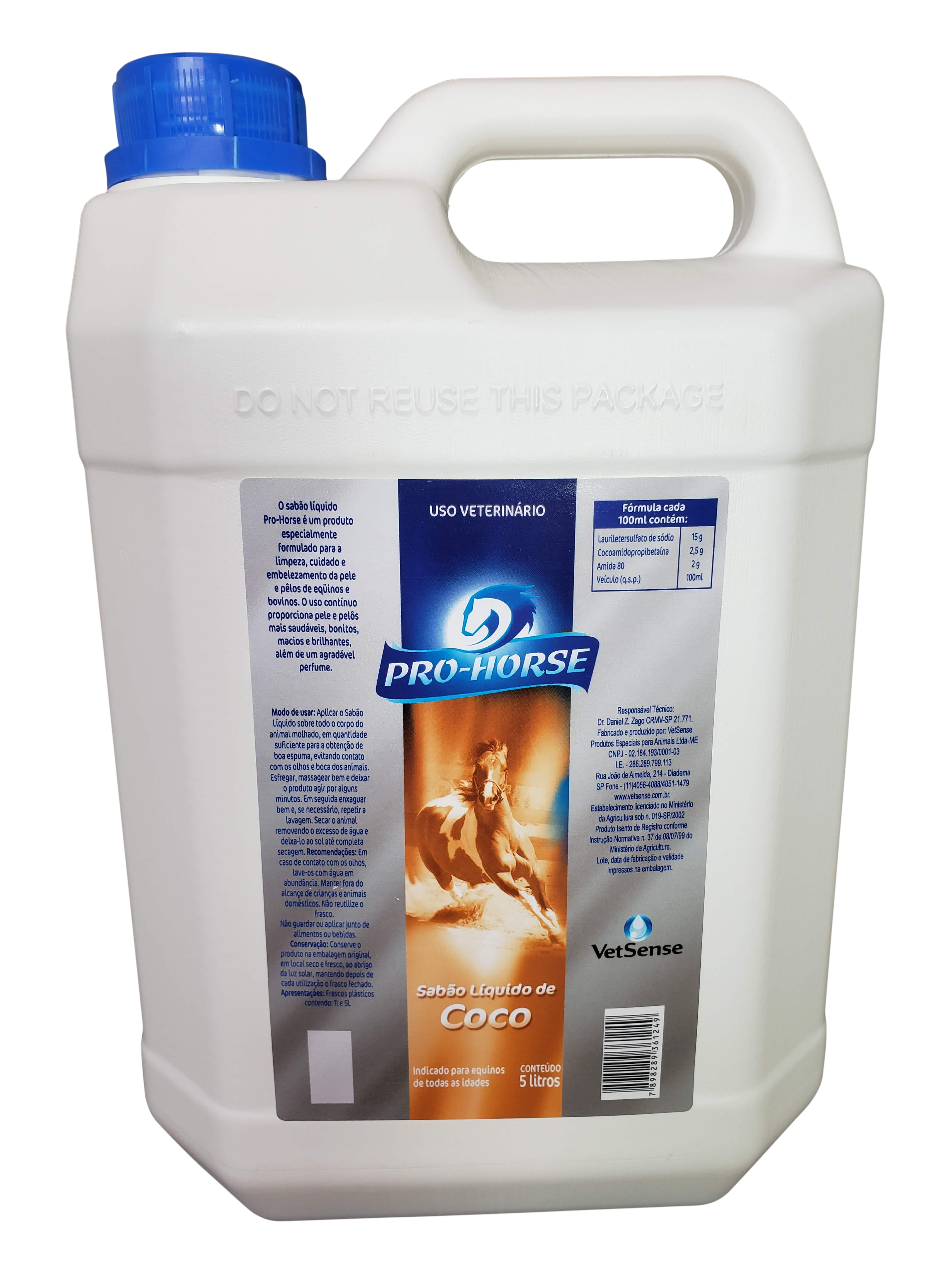 O Sabão líquido de coco foi formulado especialmente para higiene e embelezamento de eqüinos, bovinos, caprinos e ovino, de todos os tipos de pelagem.